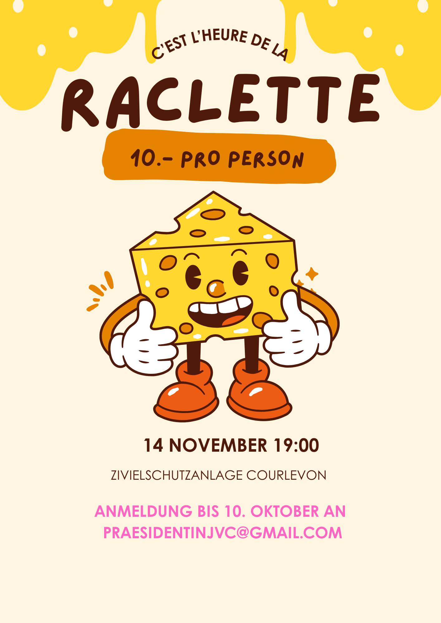 Am 14. November laden wir Sie herzlich zu unserem Racletteplausch ein. Geniessen Sie in geselliger Runde feinstes Raclette und verbringen Sie einen gemütlichen Abend mit Freunden und der Vereinsgemeinschaft. Eine perfekte Gelegenheit, um sich in der kälteren Jahreszeit aufzuwärmen!